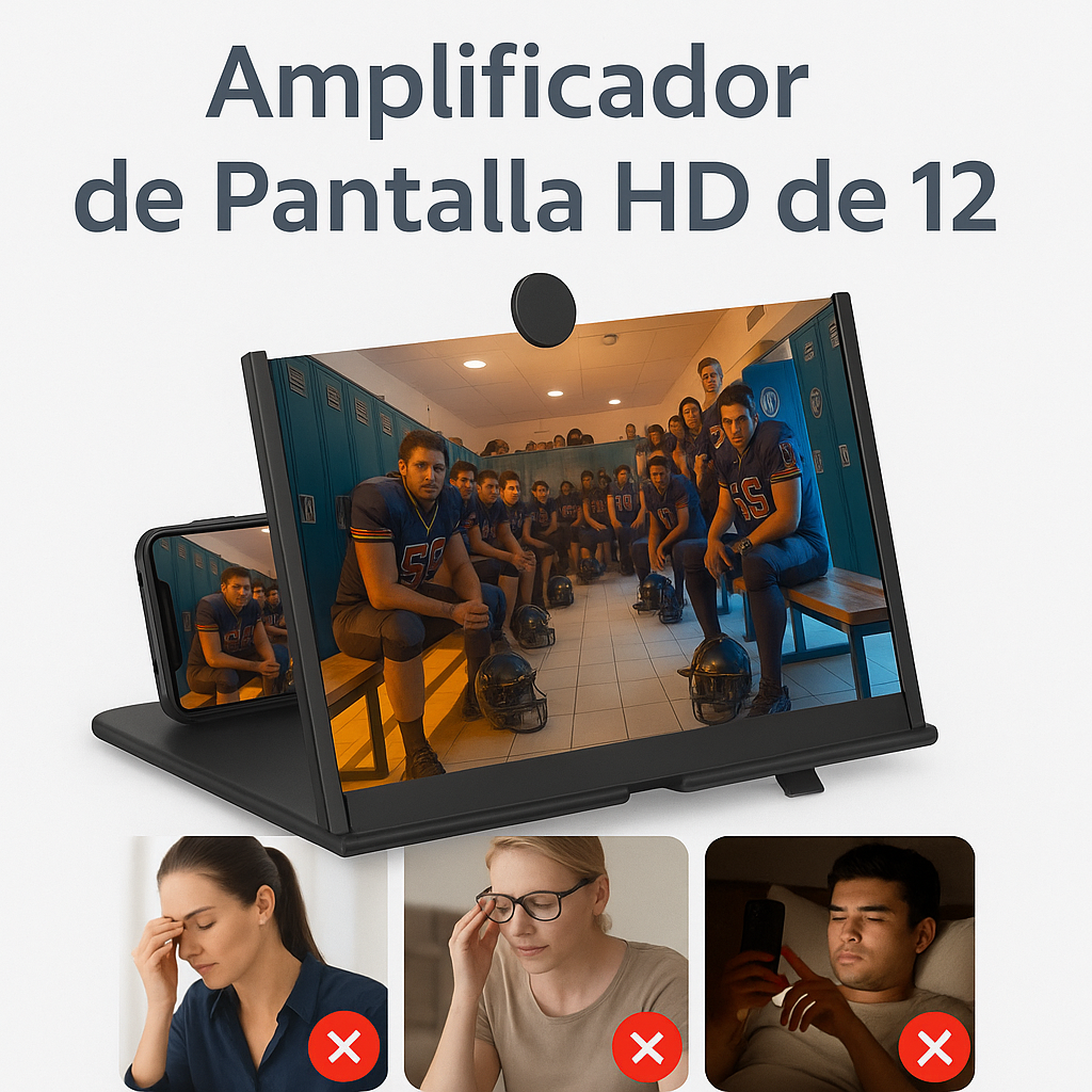 Pasamos horas frente al celular. Leer, ver videos o estudiar en una pantalla tan pequeña cansa la vista, genera molestias y afecta la postura. Este amplificador es la solución simple y portátil que convierte tu celular en una pantalla tipo tablet... ¡sin gastar en otro dispositivo!